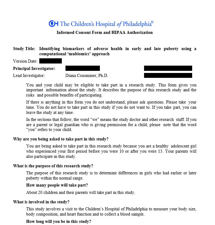 - Clinical studies, Consent forms, IRB documents
